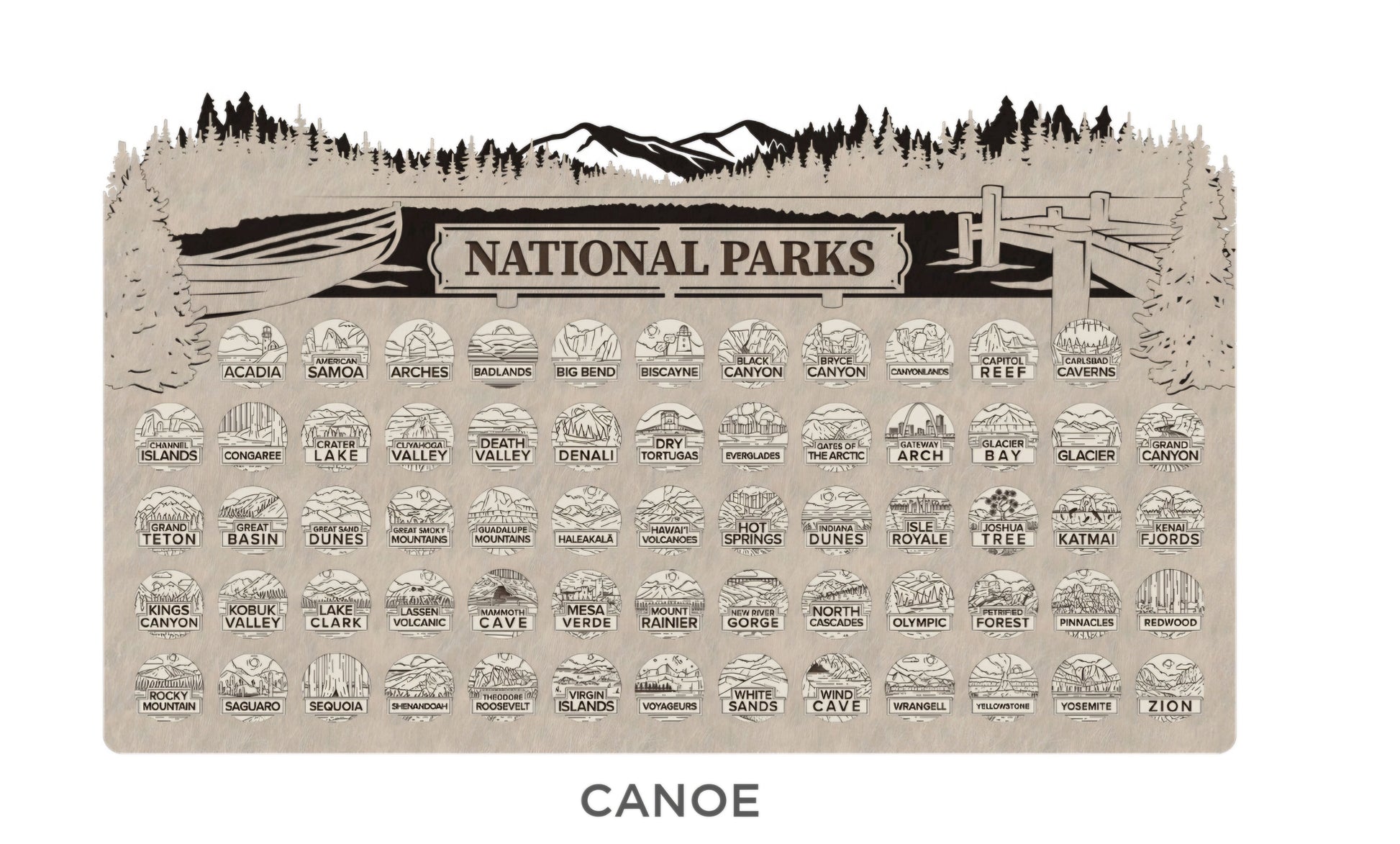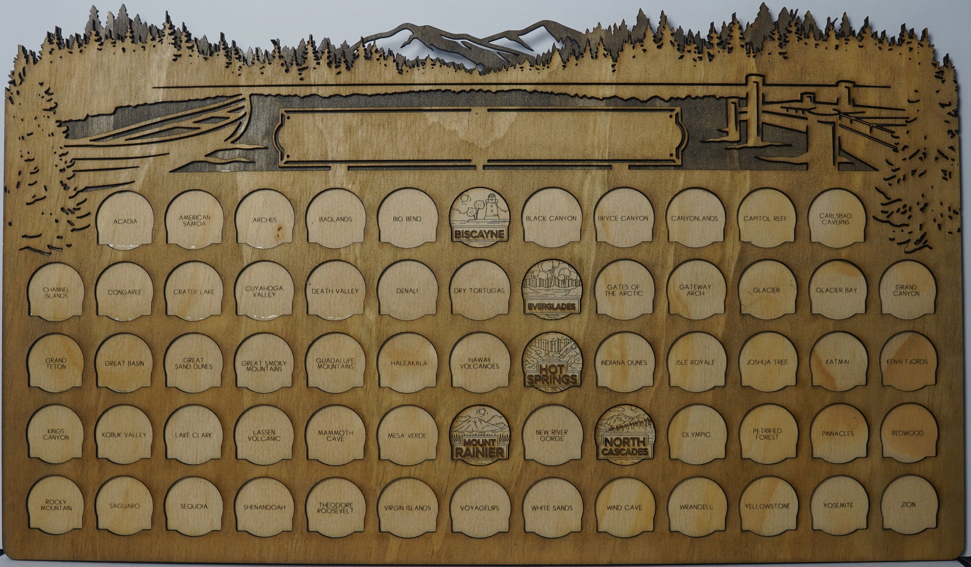 Track every breathtaking adventure through America’s National Parks with this detailed, laser-cut wooden map. Designed for hikers, campers, RV families, and nature lovers, this map showcases all 63 U.S. National Parks and includes matching wooden tokens you place as you visit each park.