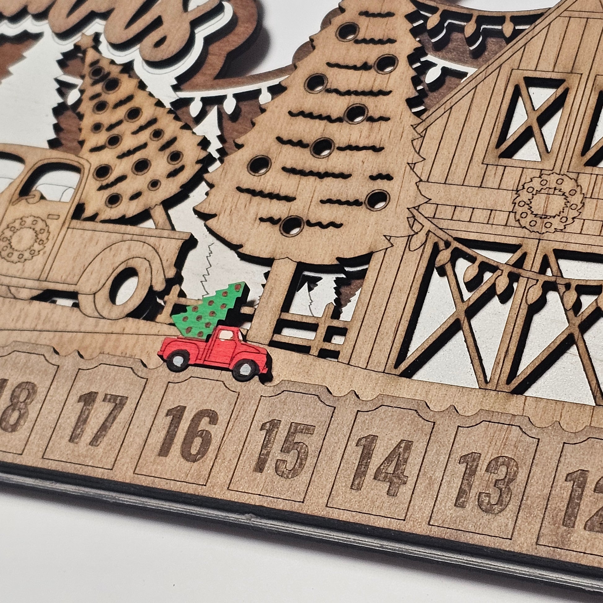 Bring warmth, excitement, and tradition into your home with our handcrafted wooden Christmas Countdown. Available in 5 beautiful finished designs, each countdown is precision laser-cut, layered for depth, and includes a matching wooden marker for daily countdown fun.